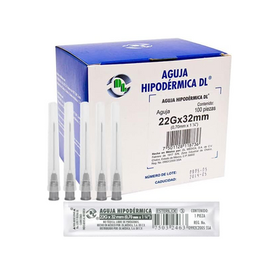 Agujas Hipodérmica DL calibre 22G x 32mm Caja 100 piezas
