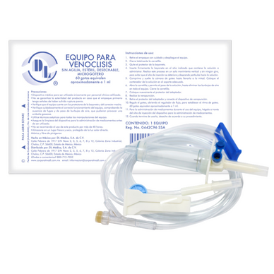 Equipo para venoclisis Microgotero Sin Aguja, estéril y desechable.