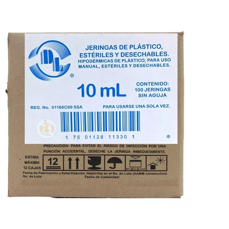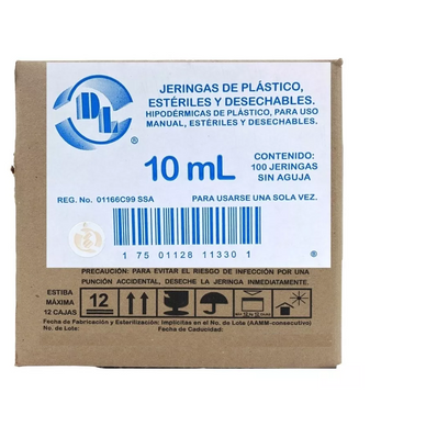 Jeringas DL 10ml sin agua caja con 100 piezas, estériles y desechables.