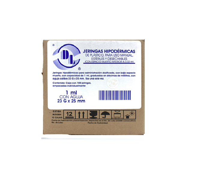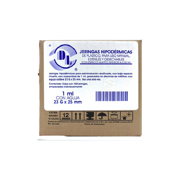 Jeringa DL 1ml 23Gx25mm Con espacio muerto inferior a 0.02ml caja con 100 pz