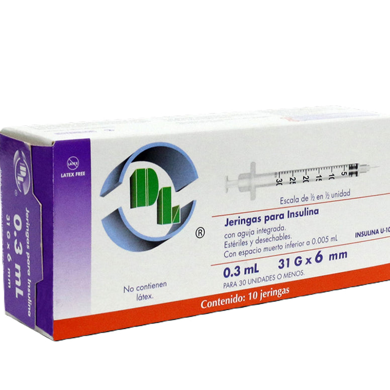 Jeringa para Insulina DL 0.3 ml 31G x 6 mm caja con 10 piezas