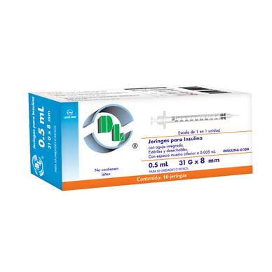 Jeringa para Insulina DL 0.5 ml 31G x 8 mm caja con 10 piezas