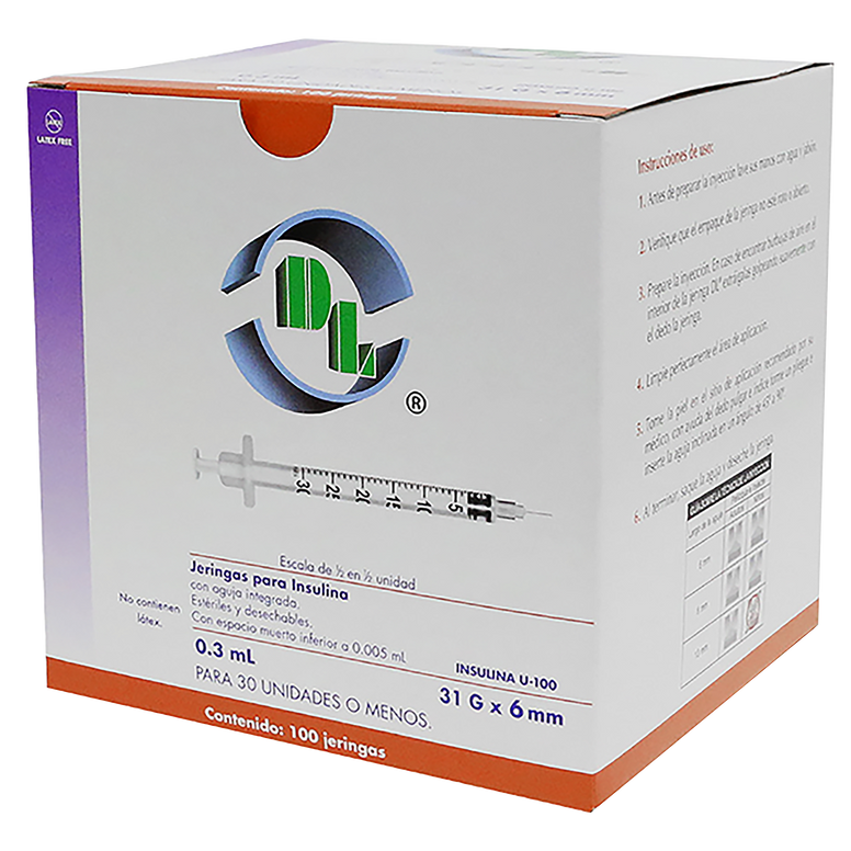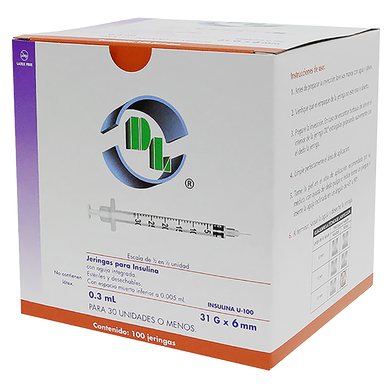 Jeringas para Insulina DL 0.3 ML 31GX06mm Caja con 100pz