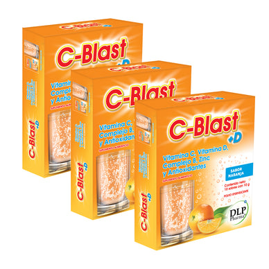 Kit 3 Cajas de C-Blast+D, Vitamina C, Vitamina D, Complejo B, Zinc y Antioxidantes Polvo Efervescente (caja con 10 sobres) (NARANJA)
